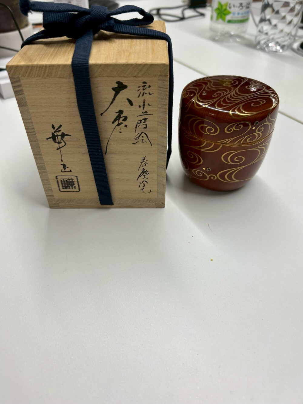 西村道爺作の間鍋をお譲りいただいたお客様から、あわせて使われていないお茶道具もお持ちいただき、その中にこちらの大棗がございました。蒔絵の仕上がりも見事で、まるで表千家や裏千家の家元書付の「好物」と見紛うほどの出来栄えでしたので、15,000円でお買取りさせていただきました。