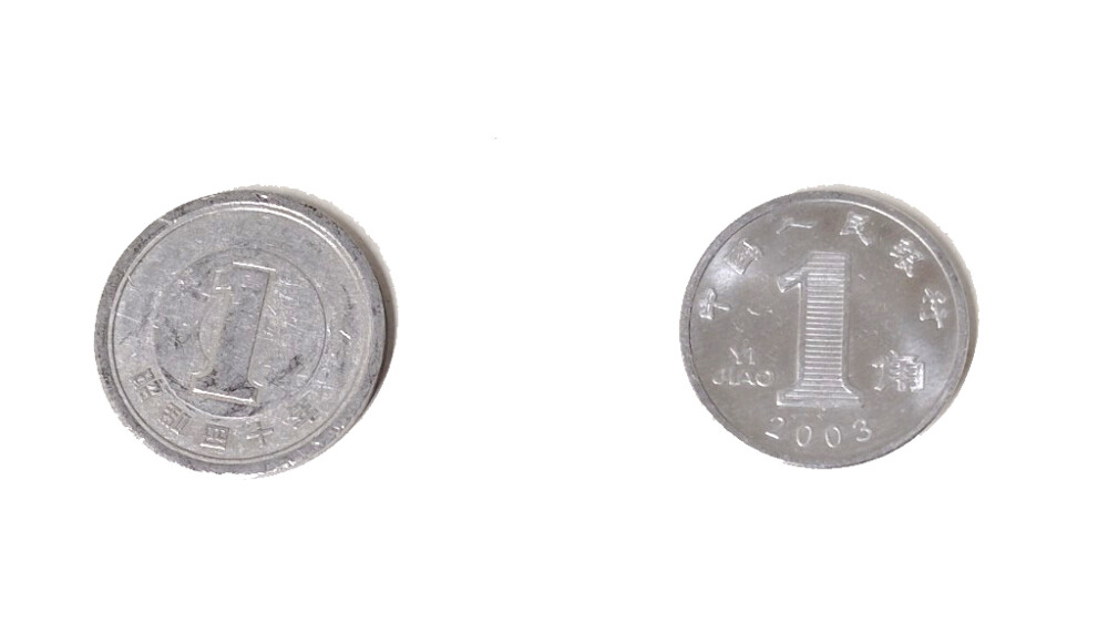 左が日本の1円玉、右が中国の1角